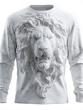 Per uomo Illusione ottica Leone Maglietta Manica Lunga maglietta Stampa 3D Girocollo Camicia Moda Esagerato 3D Quotidiano Streetwear Bianco Bianco 2 Estate Primavera Autunno Abbigliamento S M L XL