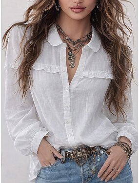 Camicia da donna in 100% cotone blouse effetto lino bottoni arricciati colore solido stilosa basic casual maniche lunghe colletto regolari top quotidiano blu nero bianco rosa beige primavera autunno