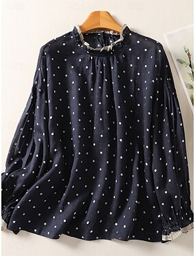 Per donna Camicia Blusa Maglie a manica lunga Patchwork A Pois Elegante Classico Moderno Manica Lunga Collo alla coreana Top Regolari Quotidiano Ferie Uscire Blu Estate Primavera