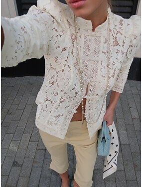 Per donna Camicia casual Camicia con Bottoni Blusa Pizzo Traforato Bottoni Quotidiano Elegante Casual Manica Lunga Collo ripiegato Top Regolari Ferie Abbigliamento mare Abbigliamento da vacanza