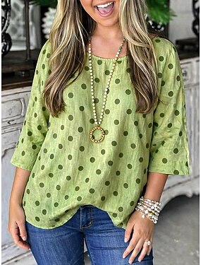 Per donna Blusa Stampato Grafico Geometrico A Pois Bohemien Vintage Tropicale Manica 3/4 Mezza Manica Girocollo Top Regolari Casuale Quotidiano Abbigliamento da vacanza Verde Estate Primavera