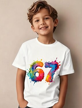 Cotone Bambini Ragazzi Nero Bianco Grafico Gergo divertente 67 Maglietta Blusa Girocollo Manica Corta All'aperto Abbigliamento Quotidiano Moda Streetwear Designer Stampa Estate