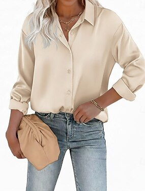 Per donna Camicia Blusa Bottoni Semplice Elegante Classico Moderno Manica Lunga Scollo a V Top Regolari Quotidiano Ferie Uscire Bianco Rosa Azzurro cielo Albicocca Grigio Estate Primavera