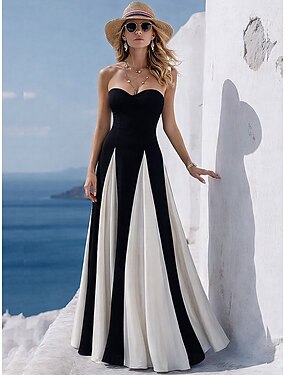 Per donna Abito maxi Abito a trapezio Elegante Festa cocktail All'aperto Feste Ospite di nozze Patchwork Vestibilità regolare Blocco di colori Senza Maniche Senza Spalline Nero
