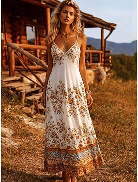 Per donna Abito maxi Vestito Estivo Abito a trapezio Abito Sottoveste Vacanza Casual Spiaggia Uscire Vestibilità comoda Grafico Paisley Tribale Senza Maniche Scollo a V Spalline sottili Arancione
