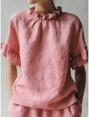 Per donna Blusa Volant Elegante Essenziale Casual Manica Corta Dolcevita Top Regolari Quotidiano Blu Nero Bianco Rosa Verde Estate Primavera Autunno