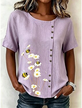 Per donna Blusa Bottoni Stampato Floreale Grafico Vintage Tropicale Elegante Manica Corta Girocollo Top Regolari Casuale Ferie Blu Bianco Giallo Viola Verde Estate Primavera