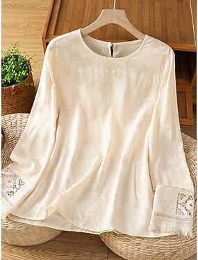 Per donna Camicia Blusa Top traforato Traforato Semplice Elegante Classico Moderno Manica Lunga Girocollo Top Regolari Quotidiano Ferie Uscire Albicocca Estate Primavera