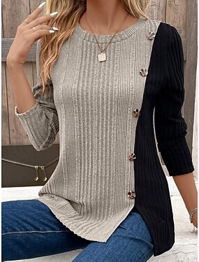 Per donna Blusa Bottoni Tinta unica Elegante Casual Manica Lunga Girocollo Top Regolari Quotidiano Cachi Primavera Autunno Inverno
