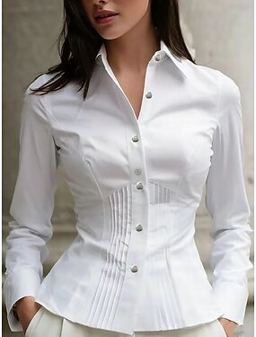 Per donna Camicia Blusa Arricciato Patchwork Bottoni Semplice Elegante Moderno Manica Lunga Colletto a Camicia Top Regolari Quotidiano Ferie Uscire Bianco Estate Primavera