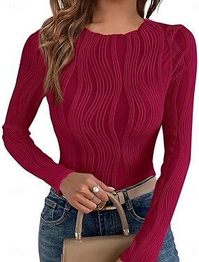 Natale Per donna Blusa Tinta unica Elegante Essenziale Casual Manica Lunga Scollo a V Top Regolari Quotidiano Ferie Blu Vino Viola Verde Primavera Autunno Inverno
