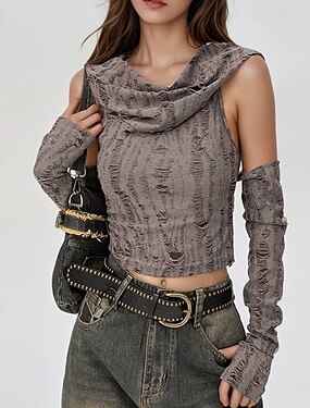 Per donna Blusa Top traforato Patchwork Blocco di colori Elegante Moderno Casual Manica Lunga Collo Alto Top con spalle scoperte Top Regolari Quotidiano Ferie Uscire Nero Estate Primavera