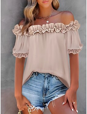 Per donna Top estivi Blusa Top Eleganti Top con paillettes Arricciato Paillettes Patchwork Tinta unica Semplice Elegante Vintage Signore Manica Corta Senza Spalle Top Regolari Quotidiano Lavoro Uscire