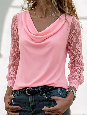 Per donna Blusa Pizzo Patchwork Tinta unica Attivo Elegante Casual Manica Lunga Girocollo Top Regolari Quotidiano Bianco Primavera Autunno