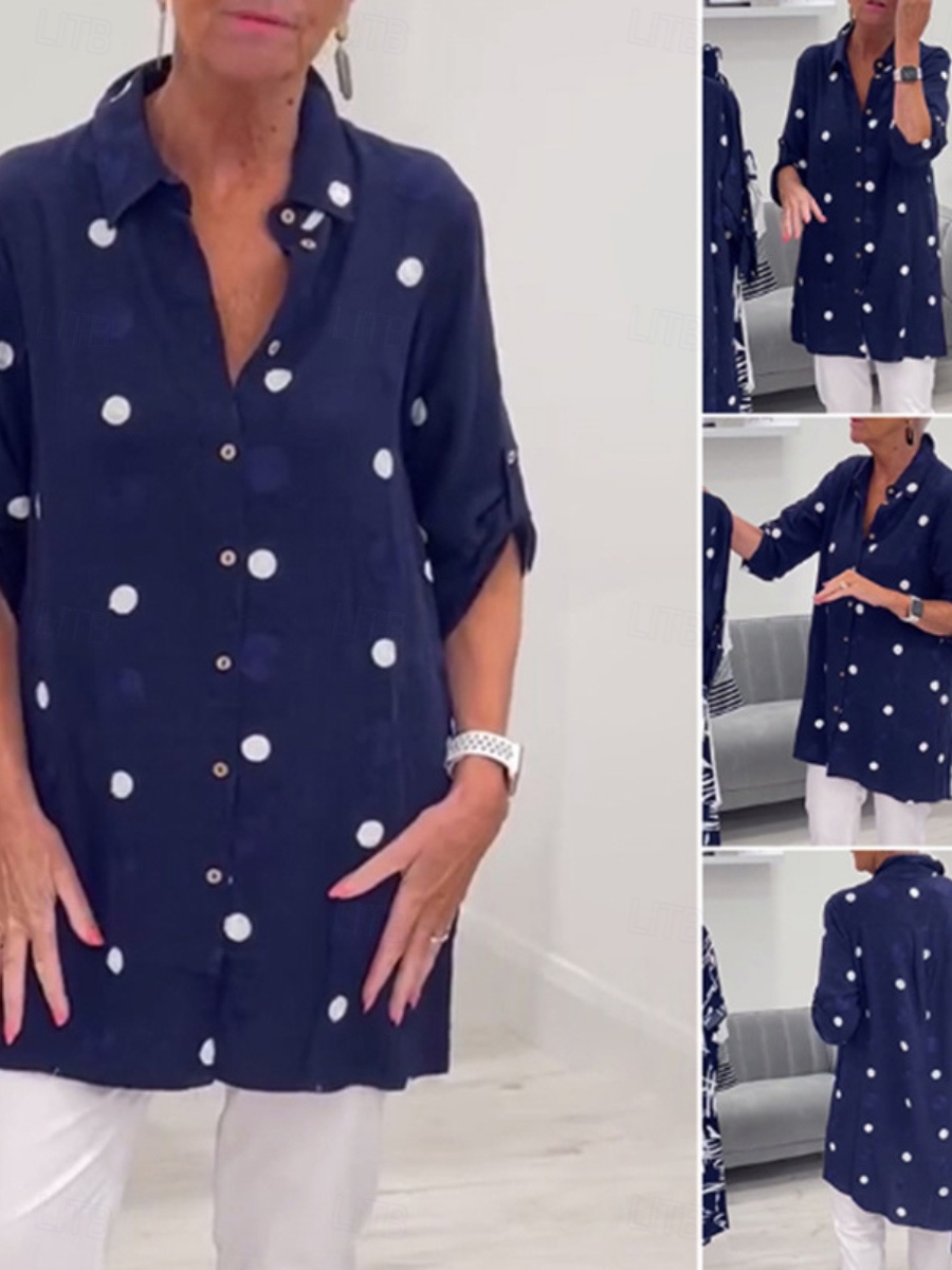 Per donna Camicia Blusa Bottoni A Pois Classico Moderno Casual Manica Lunga Collo ripiegato Top lunghi Quotidiano All'aperto Ferie Blu marino Primavera Autunno