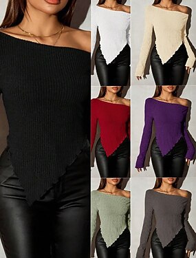 Per donna Felpa Maglione Streetwear Sexy Casual Tinta unica Senza Spalle Lavorato a maglia Orlo asimmetrico Manica Lunga Top Regolari Maglia Quotidiano Ferie Uscire Rosso bordeaux Nero Autunno Inverno