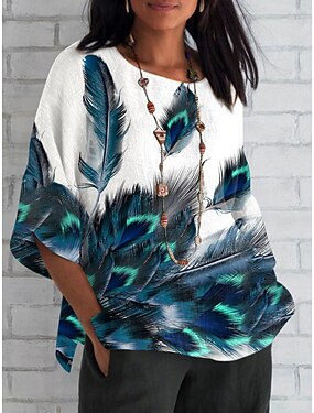 Per donna Camicia Stampato Piuma Quotidiano Casual Manica 3/4 Girocollo Top Regolari Quotidiano Ferie Blu Bianco Rosa Estate Primavera Autunno