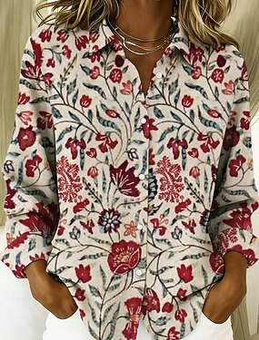 San Valentino Per donna Camicia Bottoni Stampato Floreale Grafico Elegante Moderno Casual Manica Lunga Colletto a Camicia Top Regolari Quotidiano Lavoro Bianco e Rosso Nero Bianco Rosa Viola chiaro