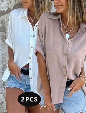 Confezioni multiple 2 pezzi Per donna Colletto a Camicia Manica Corta Nero / bianco Camicia Blusa Shorts Tasca Bottoni Semplice Casuale Quotidiano Cotone Estate