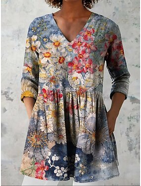 Per donna Blusa Stampato Floreale Vacanza Quotidiano Casual Manica 3/4 Scollo a V Top Regolari Quotidiano Ferie Uscire Blu Blu Reale Viola Verde Estate Primavera Autunno