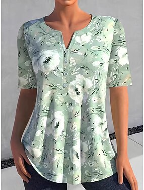 Per donna Camicia Blusa Bottoni Floreale Elegante Classico Moderno Manica Corta Scollo a V Top Regolari Quotidiano Ferie Uscire Verde Estate Primavera