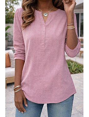 Camicia da donna in lino traspirante leggera quotidiana stilosa retro vintage manica lunga manica 3/4 colletto quotidiana per le vacanze uscita bottoni bordeaux nera rossa marrone primavera inverno