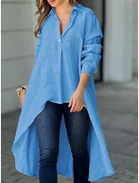 Per donna Camicia popover Camicia casual Blusa Bottoni Tinta unica Vacanza Elegante Essenziale Manica Lunga Collo ripiegato Top lunghi Quotidiano All'aperto Ferie Blu Rosso Arancione Grigio Estate
