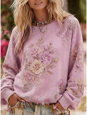 Per donna Felpa Pullover Floreale Casual Manica Lunga Girocollo Top Regolari Casuale Streetwear Abbigliamento Quotidiano Rosa Viola Primavera Autunno Inverno