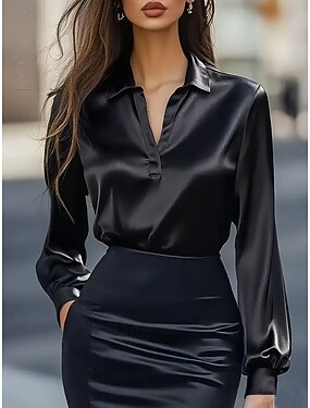 Per donna Camicia Elegant Top in raso Blusa Semplice Elegante Manica Lunga Scollo a V Top Regolari Quotidiano Uscire Nero Bianco Vino Verde Estate