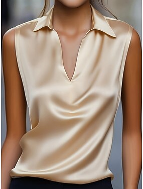 Per donna Canotta Blusa Maglietta senza maniche Semplice Elegante Classico Moderno Senza Maniche Scollo a V Top Regolari Quotidiano Ferie Uscire Argento Nero Champagne Estate Primavera