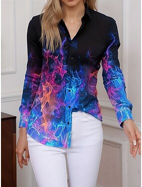 Per donna Femminile Camicia casual Astratto Casuale Manica a Vescovo Blu Manica Lunga Elegante Bohemien Vacanza Colletto a Camicia Estate