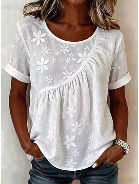 Per donna Blusa Pizzo Tinta unica Vintage Quotidiano Elegante Manica Corta Girocollo Top Regolari Casuale Quotidiano Bianco Estate Primavera
