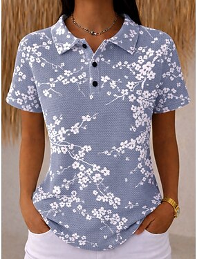Per donna Camicia Magliette Polo a Nido d'Ape Top estivi Floreale Grafico Vintage Elegante Manica Corta Collo ripiegato Colletto Polo Top Regolari Matrimonio in Spiaggia Casuale Quotidiano Blu Rosa