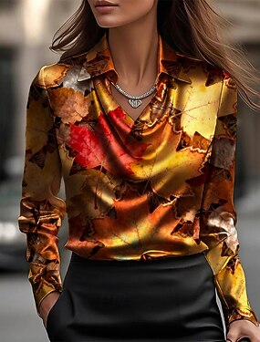 Per donna Camicia Camicia button-down Camicia casual Bottoni Stampato Grafico Elegante Casual Manica Lunga Colletto a Camicia Top Regolari Quotidiano Ferie Uscire Blu Marrone Primavera Autunno
