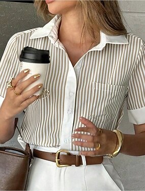 Per donna Camicia casual Camicia con Bottoni Blusa Tasca Bottoni A righe Quotidiano Elegante Casual Manica Corta Collo ripiegato Top Regolari Ferie Abbigliamento mare Abbigliamento da vacanza Blu