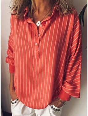 Per donna Blusa Bottoni Stampato A righe Elegante Casual Manica Lunga Colletto a Camicia Top Regolari Quotidiano Blu Giallo Rosso Verde Primavera Autunno
