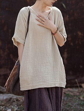 Camicie da donna 100% cotone, bluse semplici, casual, maniche corte, scollo a V, top classici, per tutti i giorni, vacanze, uscite, neri, marroni, beige, estivi, primaverili, autunnali