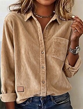 Per donna Camicia Top Eleganti Tasca Bottoni Tinta unica Semplice Vintage Carino Elegante Manica Lunga Colletto a Camicia Top Regolari Quotidiano Lavoro Uscire Cammello Autunno Inverno