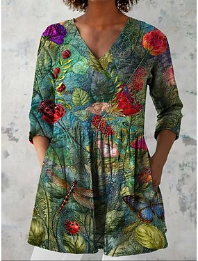 Per donna Blusa Stampato Floreale Vacanza Quotidiano Casual Manica 3/4 Scollo a V Top Regolari Quotidiano Ferie Uscire Verde Estate Primavera Autunno