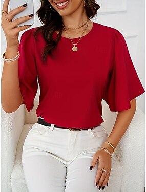 Per donna Camicia di Pizzo Blusa Top Eleganti Top in chiffon Orlo asimmetrico Tinta unica Floreale Grafico Elegante Essenziale Casual Mezza Manica Manica a Volant Scollo a Barca Scollo Tondo Top