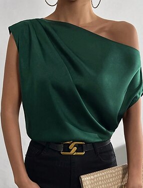 Per donna Camicia Elegant Top in raso Blusa Senza schiena Semplice Vintage Elegante Senza Maniche Asimmetrico Top Regolari Quotidiano Ferie Uscire Nero Verde chiaro Verde smeraldo Albicocca Estate