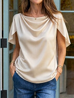 Per donna Camicia camicetta di raso Camicia elegante Tinta unica Semplice Elegante Moda Casual Manica Corta Girocollo Top Regolari Quotidiano Abbigliamento casual alla moda Lavoro Albicocca Estate