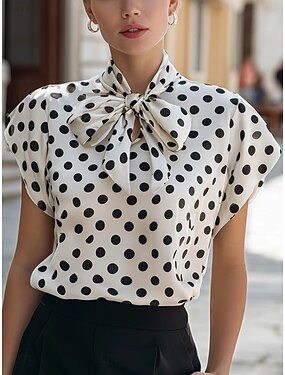 Per donna Camicia Blusa Top a pois Fiocco Geometrico Elegante Essenziale Classico Manica Corta Cravatta al collo Top Regolari Quotidiano Ufficio Ferie Nero Bianco Rosso Estate Primavera