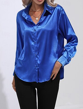 Per donna Camicia Elegant Top in raso Blusa Bottoni Semplice Elegante Vintage Manica Lunga Colletto a Camicia Top Regolari Ferie Uscire Giallo Rosso Blu Reale Verde smeraldo Rosa Estate Primavera