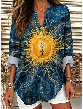 Per donna Camicia Bottoni Stampato Grafico Astratto Elegante Casual Manica Lunga Colletto a Camicia Top Regolari Quotidiano Blu Primavera Autunno Inverno