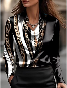 Per donna Camicia Elegant Top in raso Blusa A righe Elegante Manica Lunga Colletto a Camicia Top Regolari Ferie Uscire Bianco e nero Primavera Autunno