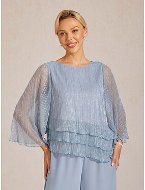 Per donna Blusa Top Eleganti Metallico Tinta unica Elegante Manica 3/4 Manica a Campana Girocollo Top Regolari Quotidiano Ospite di nozze Azzurro cielo Estate Primavera Autunno