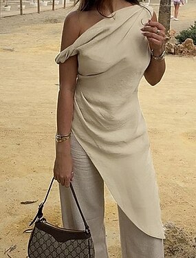 Per donna Blusa Arricciato Orlo asimmetrico Semplice Moda Moderno Senza Maniche Asimmetrico Top lunghi All'aperto Abbigliamento casual alla moda Ferie Cachi Estate Primavera