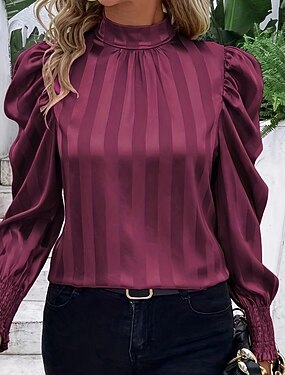 Per donna Camicia Elegant Top in raso Blusa Arricciato Semplice Elegante Manica Lunga Colletto a Camicia Top Regolari Ferie Uscire Vino Autunno Inverno