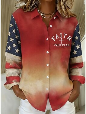 Per donna Camicia Camicia button-down Camicia casual Bottoni Stampato Bandiera Elegante Classico Casual Manica Lunga Colletto a Camicia Top Regolari Quotidiano Ferie Uscire Blu Rosso Primavera